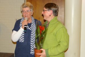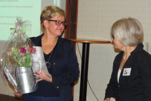 VTS stipendium för 2017 tilldelades Marie Nordmark, ”För hennes stora engagemang och genuina trädgårdsintresse, både med arbetet i sin egen vackra och intressanta trädgård och inte minst i allt hon bidragit med i vår förening”. Utdelare Ulla Jerregård.