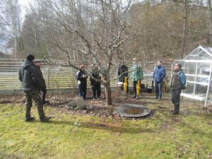 Lördagen den 18 mars hade beskärningskursen sin 3:e träff. Nu var det dags att tillämpa kunskaperna om beskärning av fruktträd med ledning av Stefan Boegård.