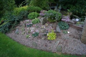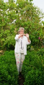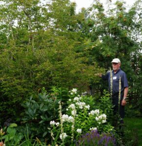 Det var ett 40-tal medlemmar som hade styrt kosan till Vallby för att titta på Ann-Christine och Lasses trädgård. Ann-Christin började med att berätta hur trädgården hade växt fram under årens lopp. Från att från början bara ha bestått av gräsmatta med några buskar och träd runt omkring, är den nu ett prunkande paradis som rymmer det mesta en trädgårdsälskare kan önska sig. Det finns stenparti, skuggplanteringar och en damm där näckrosorna vaktas av en krokodil. Att dagliljor och hostor är Ann-Christines favoritväxter framgår tydligt. Det finns ett flertal av båda sorterna och tom en hostateater. Det finns även en hel del rariteter som t.ex Kinesisk kryddbuske som visade upp sin vackra blomma.