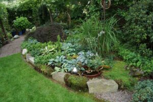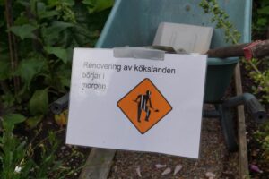 Lasse berättade om komposteringen som är en trädgårds början och slut. Det fanns även exempel på att en trädgård aldrig blir riktigt färdig. Aktuella projekt hade märkts ut med skyltar. Tack Ann-Christine och Lasse för att ni delar med er av era trädgårdstankar.