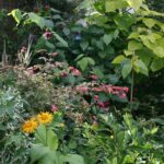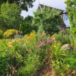 En av de sista dagarna i juli besökte vi Anngerd och Lennart Thegel i deras trädgård i Billsta. Dagen hade, som många dagar i juli, varit omväxlande med sol och regn och precis när vi skulle starta för kvällen så blev det uppehåll. Trädgården ligger i norra delen av Västerås och är på 1300 m2. Som ni ser på bilderna (som vanligt är de många) så finns det en stor mängd träd, buskar och perenner. De anlade sin trädgård när de byggde huset 1984 men de senaste fem åren har intresset för växter eskalerat vilket har inneburit att det finns ca 450 olika träd och buskar. Många av dessa har variegerade blad eller annorlunda färger. Förutom det som är planterat i rabatter så finns mycket växter i krukor, en del rumsväxter andra förvaras i uterum eller växthus. Lennart och Anngerd inledde visningen med några ord om hur trädgården kommit till, tack familjen Thegel för en fin upplevelse!