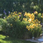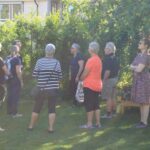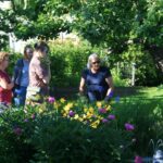 Nu kommer trädgårdsbesöken tätt, idag i strålande sol besökte vi Eva Niklassons trädgård. Även den en äldre trädgård från 1950-talet som i stort fått behålla sin utformning men mycket växter tillförda under årens lopp. Det stora äppelträdet som ger skugga utgör en verklig mittpunkt i trädgården. Några bilder från besöket.
