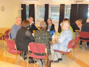 Till trädgårdscaféet kom så många medlemmar att det kunde bildas 3 grupper med vardera 5 trädgårdar. Några från förra säsongens ville vara med igen då det hade varit så roligt och inspirerande. Kul tycker vi i föreningen och ett bevis på att det här formen av trädgårdsbesök ger mersmak.